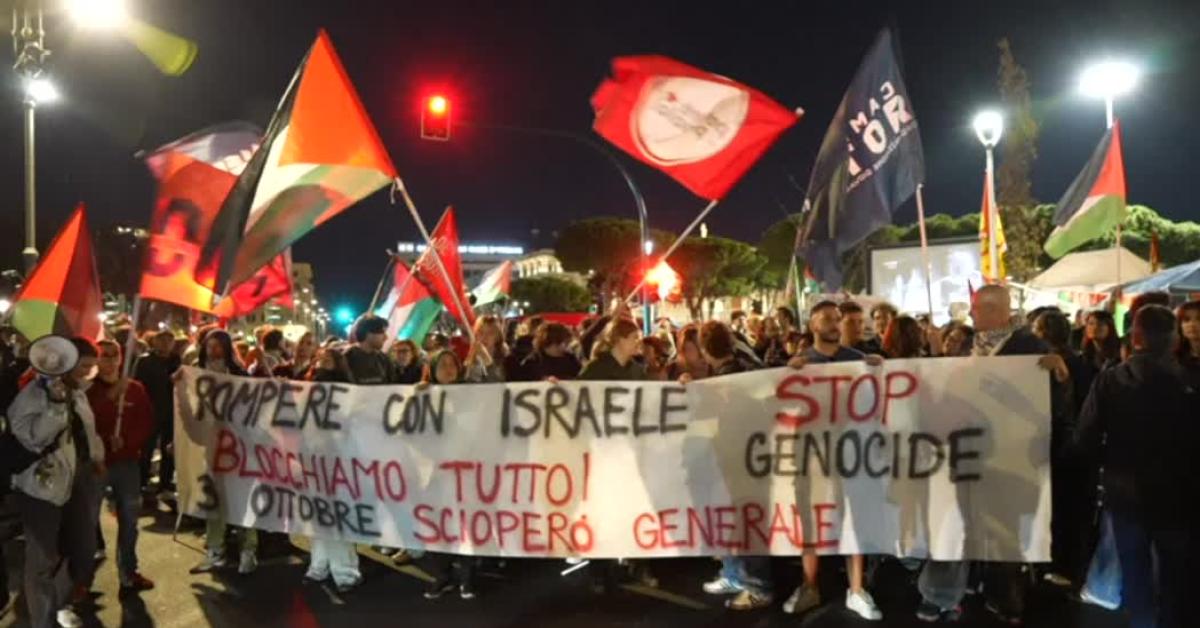 "Roma è scesa in piazza dalla parte degli attivisti e delle attiviste della Flotilla, dalla parte del popolo e della resistenza palestinese, denunciando complicità del governo con il terrorismo di Israele e pretendendo la rottura degli accordi diplomatici e commerciali, sapendo benissimo che la complicità si manifesta anche nel silenzio assordante che le finte opposizioni hanno dimostrato in questi due anni", hanno detto gli organizzatori.