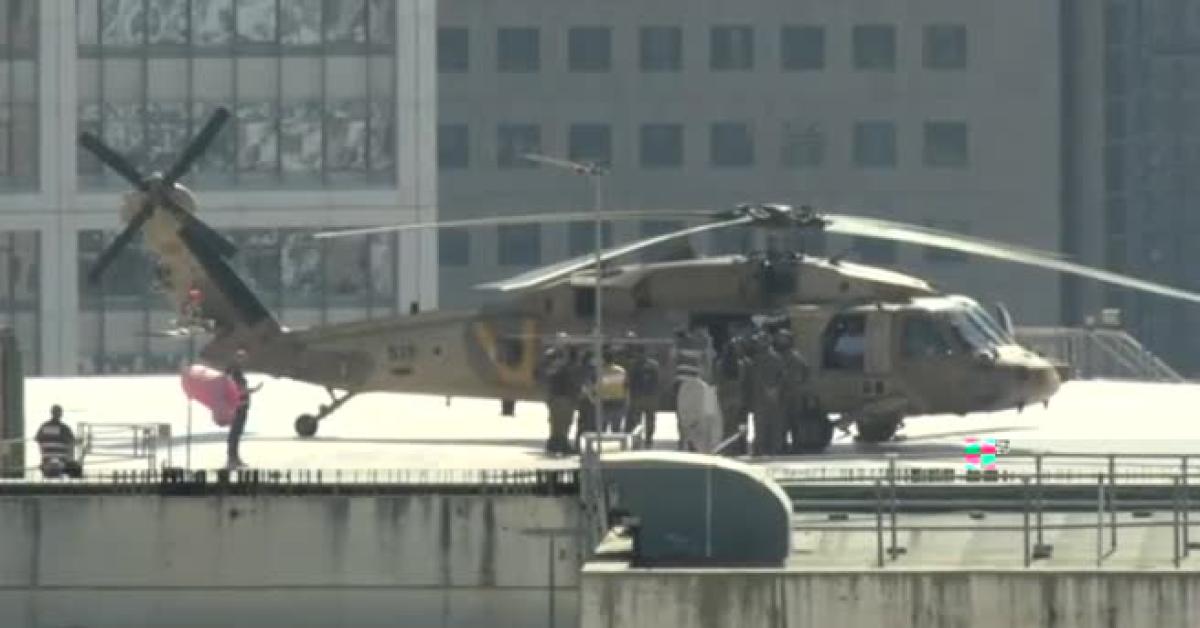 Roma, 13 ott. (askanews) - Nelle immagini l'atterraggio dell'elicottero con a bordo gli ostaggi israeliani liberati sul tetto dell'ospedale Ichilov di Tel Aviv.