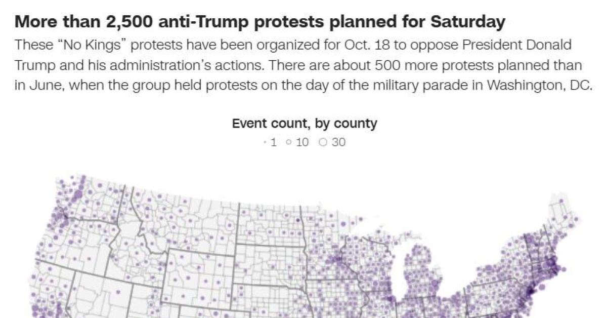 Già lo scorso 14 giugno oltre cinque milioni di dimostranti si era riunito per denunciare le mosse politiche di Trump, ma nulla in confronto a quanto avvenuto ieri negli Usa dove i cortei hanno mostrato cartelloni con scritte come "Resistenza" o l'immagine di corone depennate. Anche personaggi come Robert De Niro e Bernie Sanders e politici (tra cui Hillary Clinton) hanno sostenuto l'iniziativa ("In America non abbiamo re, e non ci tireremo indietro contro caos, corruzione e crudeltà”) mentre le reazioni dalla Casa Bianca non si sono fatte attendere. Mike Johnson, presidente della Camera, ha accusato i manifestanti di riunire "marxisti, socialisti, anarchici"; il senatore Tom Emmer ha parlato di "ala terrorista" del Partito Democratico.