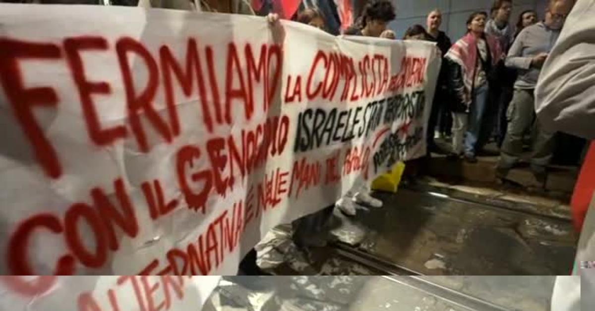 Milano, 21 ott. (askanews) - Circa 200 persone si sono ritrovate a Milano al presidio pro-Pal vicino al consolato americano tra via Turati e Largo Donegani.