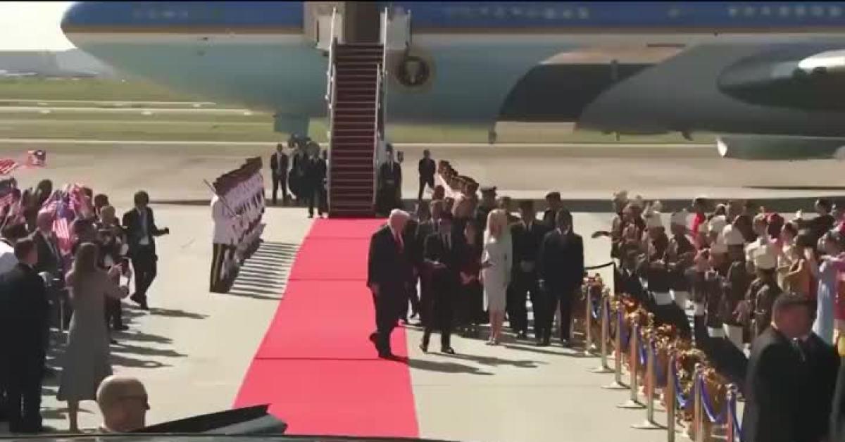 Una cerimonia di musica e balli tradizionali sulle cui note hanno danzato decine di ballerini malesiani. È stata questa la cerimonia di benvenuto riservata al Presidente degli Stati Uniti Donald Trump non appena atterrato all'aeroporto di Kuala Lumpur in Malesia. Danze a cui si è unito anche Trump che ha improvvisato qualche passo di danza unendosi al giubilo collettivo.