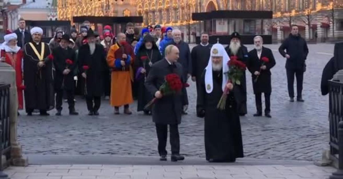 Mosca, 4 nov. (askanews) - Il presidente russo Vladimir Putin ha deposto fiori al monumento dedicato a Minin e Pozarskij sulla Piazza Rossa di Mosca per celebrare la Giornata dell'unità nazionale.