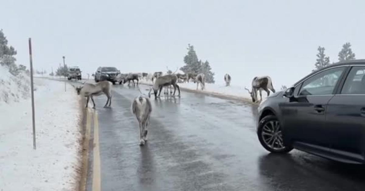 Londra, 19 nov. (askanews) - Le renne pascolano nella neve delle Highlands scozzesi, mentre le auto che attraversano la catena montuosa dei Cairngorms si fermano ad osservare gli animali, parte dell'unica mandria di renne allo stato brado del Regno Unito. La Gran Bretagna sta vivendo la sua prima ondata di freddo invernale, con parti dell'Inghilterra settentrionale e della Scozia ricoperte di neve.