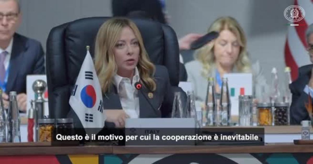 Ecco un passaggio dell'intervento della presidente del Consiglio Giorgia Meloni al G20 in corso a Johannesburg: "In questo mondo interconnesso in cui viviamo, cresciamo o regrediamo in relazione agli altri - ha detto Meloni - Lo abbiamo visto molto chiaramente negli ultimi anni con gli effetti del cambiamento climatico, la crisi pandemica, l'ingiustificata guerra russa di aggressione contro l'Ucraina. E voglio dire che l'Italia è pronta a lavorare con i suoi partner europei e americani per raggiungere una pace giusta, così come l'Italia sta già contribuendo in Medio Oriente per consolidare un risultato che è fragile ma molto importante. Ad ogni modo, sappiamo che questi fenomeni hanno avuto un impatto ben oltre i confini in cui si sono verificati". "Questo è il motivo - ha aggiunto - per cui la cooperazione è inevitabile ed è per questo che abbiamo bisogno di una crescita basata su regole condivise e relazioni commerciali veramente eque".