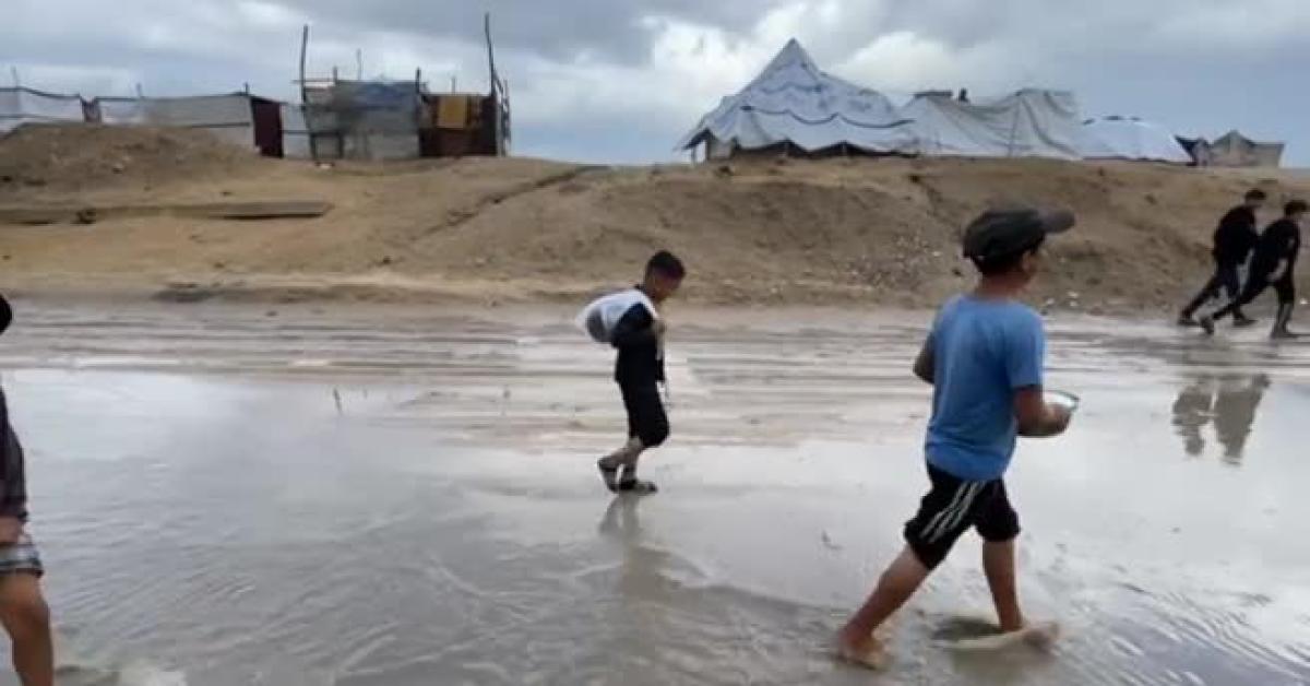 Gaza City, 25 nov. (askanews) - Le forti piogge che sono cadute in questi giorni aggravano le difficoltà degli sfollati di Gaza. "Voglio vivere, sono stufo di questa vita", dice Mohammed Ali, palestinese sfollato, mentre l'acqua piovana penetra nella sua tenda a Khan Yunis, nella Striscia di Gaza meridionale. "Non abbiamo un riparo per proteggerci dall'acqua e da questo caos", aggiunge un altro palestinese sfollato.