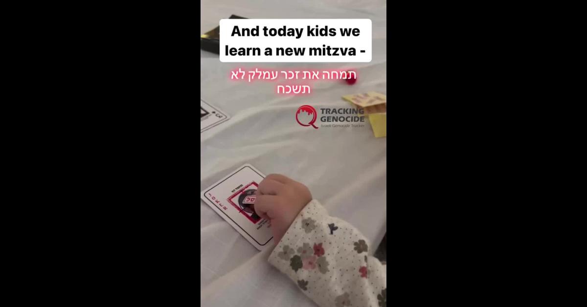 Sta girando sui social ormai da giorni un video che testimonia più che platealmente, come l'uccisione mirata, oltre che di civili palestinesi, di miliziani di Hamas rappresenti non solo un "dovere" per i soldati israeliani, ma un'aberrante materia educativa da trasmettere ai bambini. Affinché l'intolleranza etnico-religiosa contro i palestinesi si radichi in società come forma di precoce inculturazione. Nel video si osservano due bambini maneggiare delle carte da gioco fornite loro presumibilmente dal padre, un soldato israeliano. Il mazzo però non rappresenta al suo interno i simboli o le iconografie proprie di un mazzo da gioco, bensì il volto di soldati di Hamas.