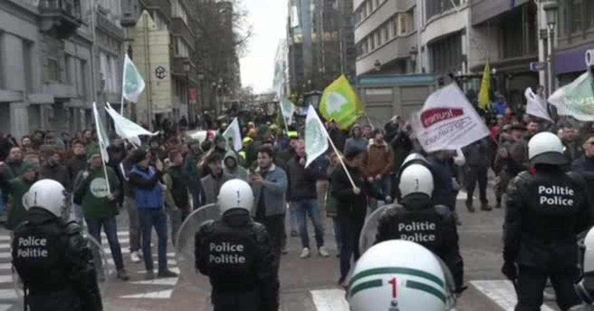 Bruxelles, 18 dic. (askanews) - Gli agricoltori francesi cantano la Marsigliese, l'inno nazionale della Francia, davanti alla polizia anti-sommossa durante una protesta di categoria a Bruxelles contro l'accordo commerciale Ue-Mercosur, tra i temi del vertice Ue in corso nella capitale belga. Immagini Afp.