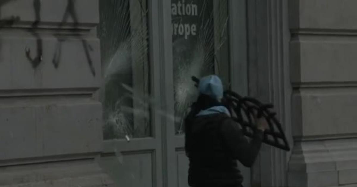 La polizia ha usato idranti e lacrimogeni per disperdere i manifestanti in Place du Luxembourg. Contro gli agenti sono stati lanciati ortaggi ma anche sampietrini, bottiglie, petardi e fuochi d'artificio.