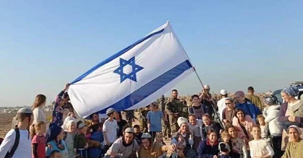 In serata, diverse decine di uomini, donne, bambini piccoli e neonati appartenenti a uno dei quadri di insediamento del gruppo si sono radunati attorno a una grande bandiera israeliana, come mostrato in una foto diffusa dallo stesso movimento, in una messa in scena dal forte valore propagandistico.