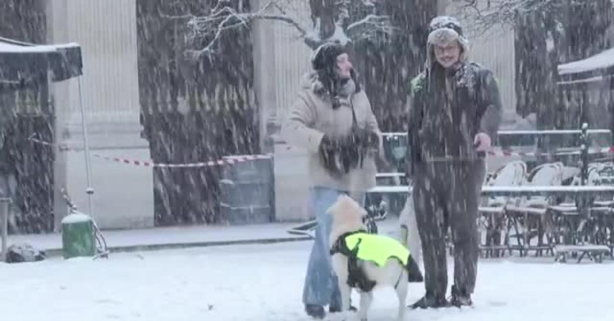 Parigi, 5 gen. (askanews) - La neve cade sul giardino del Palais-Royal, nel centro di Parigi, mentre Météo-France ha posto 26 dipartimenti in vigilanza arancione per neve e ghiaccio, dal Poitou-Charentes al bacino parigino, fino a martedì mattina.