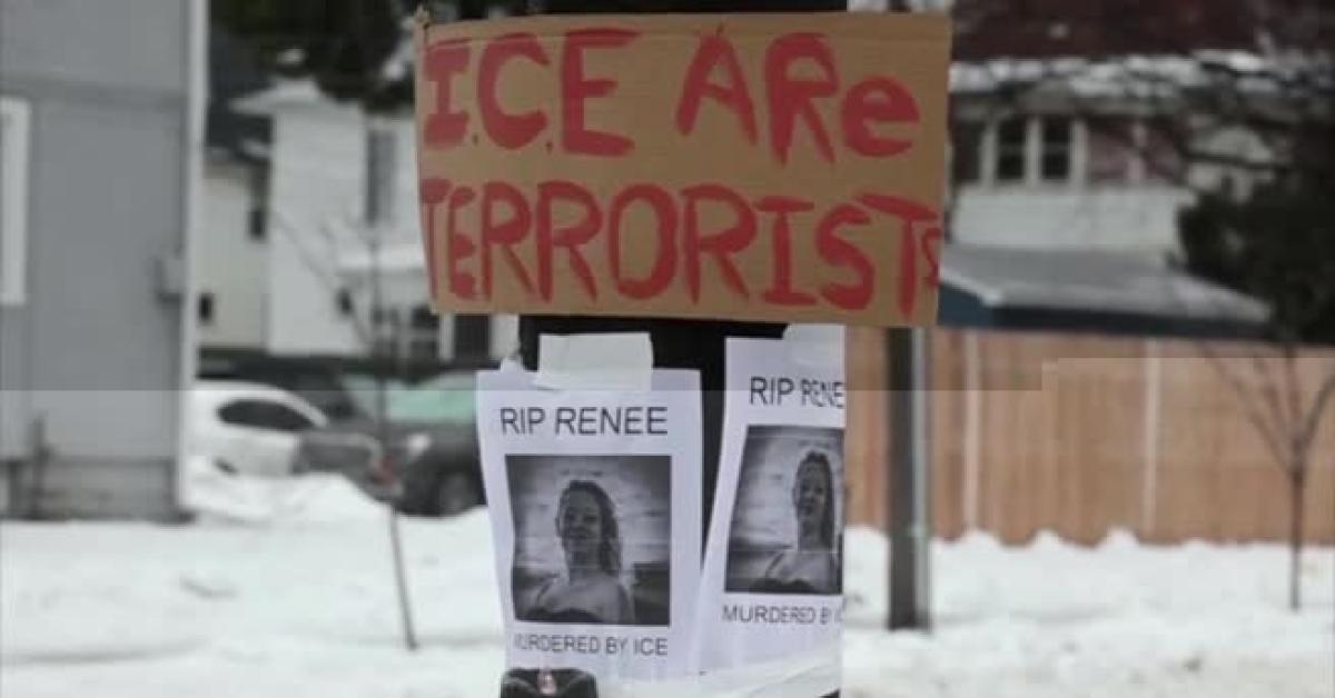 Minneapolis (Minnesota), 8 gen. (askanews) - Gli abitanti di Minneapolis rendono omaggio al luogo della sparatoria mortale per Renee Nicole Good da parte degli agenti dell'Ice. Una donna rende omaggio alla commemorazione improvvisata sul posto. Un cartello dice "L'Ice sono terroristi". Un poster in primo piano recita: "RIP Renee, assassinata dall'Ice".