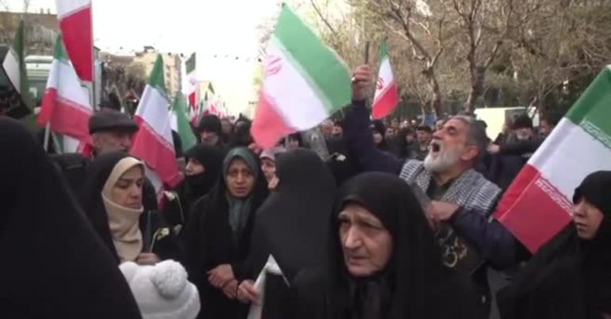 Nelle immagini diffuse, si vedono migliaia di persone in corteo, molte bandiere della Repubblica islamica e le bare avvolte dai vessilli nazionali. La cerimonia è iniziata con la lettura di preghiere per i defunti davanti all'università della capitale. Molte le donne vestite di nero e su un cartello la scritta "Abbasso gli Usa".