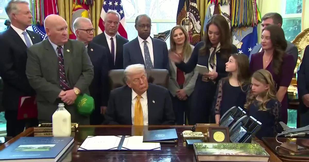 Il presidente Usa Donald Trump si addormenta nello studio ovale della Casa Bianca. Il video è diventato subito virale, e vede il tycoon appisolarsi in occasione della cerimonia di firma della legge che autorizza le scuole pubbliche a servire latte intero e al 2%. In quel momento il Segretario all'Agricoltura Brooke Rollins illustrare stava illustrando i dettagli della norma, affiancata dal Segretario alla Salute Robert F. Kennedy Jr. e dall'ex Segretario all'Edilizia Abitativa Ben Carson.