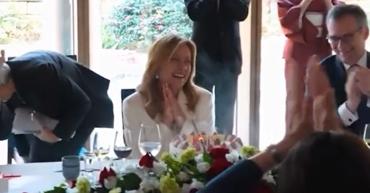 Le immagini includono non solo i momenti istituzionali, ma anche la parte finale del pranzo offerto da Takaichi alla premier italiana: un brindisi accompagnato dal “salute” pronunciato in italiano dalla leader giapponese, seguito dall’arrivo di una torta con le candeline. A quel punto la delegazione nipponica insieme alla premier Takaichi intona in italiano “Tanti Auguri” per Meloni, che proprio in quei giorni (il 15 gennaio) ha compiuto 49 anni.