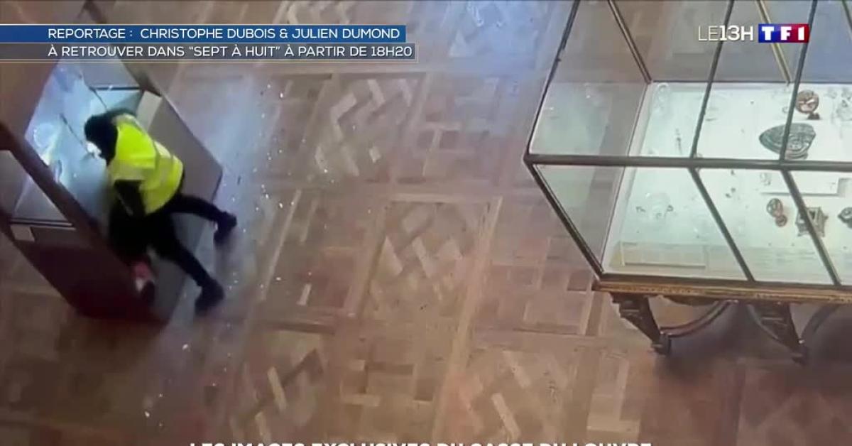 Un video mostra in parte come i ladri siano riusciti a portare a termine il furto al Louvre. Uno dei malviventi, con giacca ad alta visibilità, usa l'avambraccio per perforare il vetro frantumato di una teca, infila la mano e porta via tre preziosi internamenti, infilati in una tasca interna. Dopodiché raccoglie una borsa da terra e si allontana velocemente.