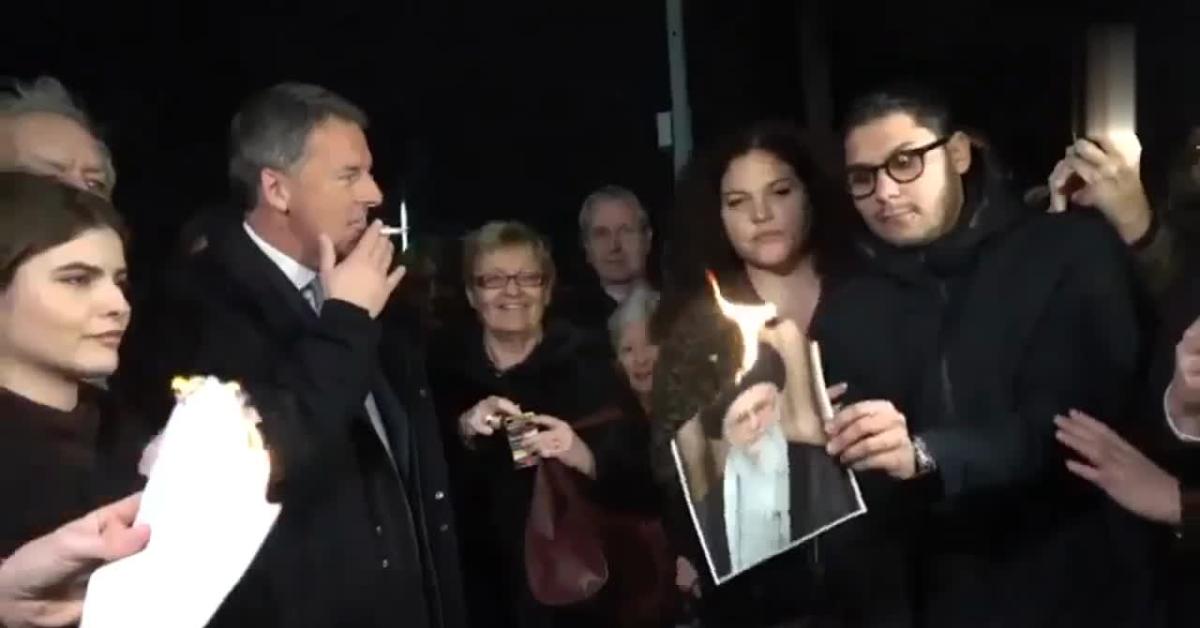 Una foto di Ali Khamenei che brucia, stampata su un foglio di carta, e il leader di Italia Viva ed ex Presidente del Consiglio, Matteo Renzi, che ci si accende la sigaretta. Questa la scena simbolicamente riprodotta su via Nomentana a Roma, di fronte alla sede dell’Ambasciata di Teheran in Italia, che Italia Viva ha organizzato con i vertici del partito e qualche militante per mandare il proprio sostegno alle rivolte iraniane di questi giorni, sostenute da CIA e Mossad per spingere nel regime-change.