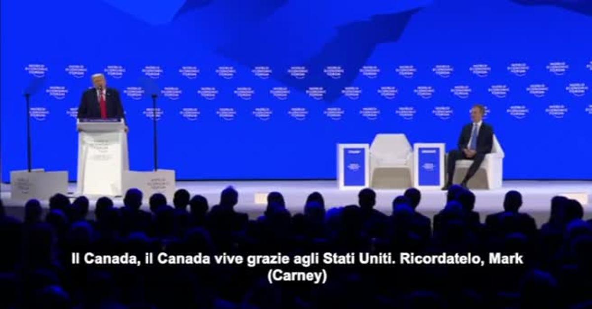 Davos (Svizzera), 21 gen. (askanews) - Donald Trump rimprovera il Canada e lo esorta a "essere grato", dopo che il primo ministro Mark Carney ha messo in guardia da una possibile rottura del sistema globale guidato dagli Stati Uniti. "Il Canada vive grazie agli Stati Uniti. Ricordatelo, Mark, la prossima volta che farai le tue dichiarazioni", ha affermato il Presidente degli Stati Uniti, intervenendo al World