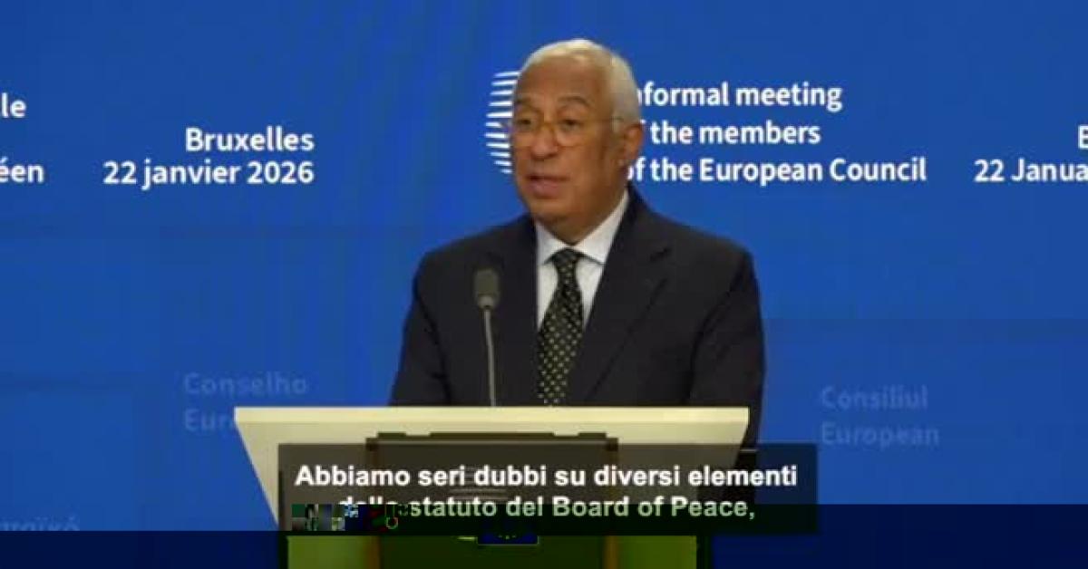 Bruxelles, 23 gen. (askanews) - I leader dell'Unione europea esprimono forti perplessità sulla proposta del presidente Usa Donald Trump di istituire un "Board of Peace". Lo afferma il presidente del Consiglio europeo Antonio Costa, al termine di un vertice d'emergenza del European Council a Bruxelles. "Abbiamo seri dubbi - ha detto Costa - su diversi elementi dello statuto del Board of Peace, in particolare per quanto riguarda il suo ambito di applicazione, la sua governance e la sua compatibilità con la Carta delle Nazioni Unite".