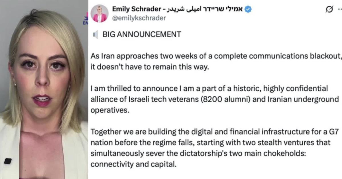 Il significato del messaggio pubblicato da Emily Schrader su Truth è molto chiaro: la sionista opera con l'intelligence contro il regime di Khamenei. La giornalista ha scritto: "Sono entusiasta di annunciare che faccio parte di un’alleanza storica e altamente riservata composta da veterani della tecnologia israeliana, ex membri dell’unità 8200 e operatori della rete clandestina iraniana. Insieme stiamo costruendo l’infrastruttura digitale e finanziaria di una futura nazione del G7 prima della caduta del regime, a partire da due iniziative stealth che colpiscono simultaneamente la connettività e il capitale". La stessa Schrader ha poi invitato presunti investitori a sostenere economicamente il progetto, parlando di reti digitali e finanziarie create in modo occulto.