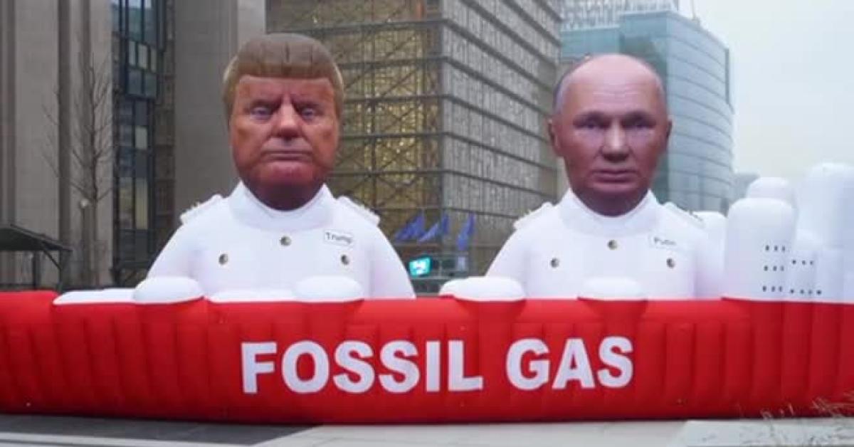 Roma, 26 gen. (askanews) - Gli attivisti di Greenpeace hanno esposto due mega gonfiabili con i volti rispettivamente del presidente degli Stati Uniti Donald Trump e del collega russo Vladimir Putin nel quartiere europeo di Bruxelles per protestare contro la "dipendenza dai combustibili fossili di altri paesi". "Siamo qui per mettere in guardia l'Unione Europea dal commettere lo stesso errore che abbiamo commesso con la Russia, rendendoci dipendenti da un partner inaffidabile: gli Stati Uniti di Trump", afferma Thomas Gelin, responsabile della campagna di Greenpeace.