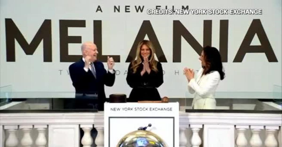 New York, 28 gen. (askanews) - La First lady statunitense Melania Trump suona la campanella d'apertura della Borsa di New York in vista dell'uscita, il 30 gennaio, del suo documentario intitolato "Melania" e ispirato all'autobiografia omonima uscita nel 2024.