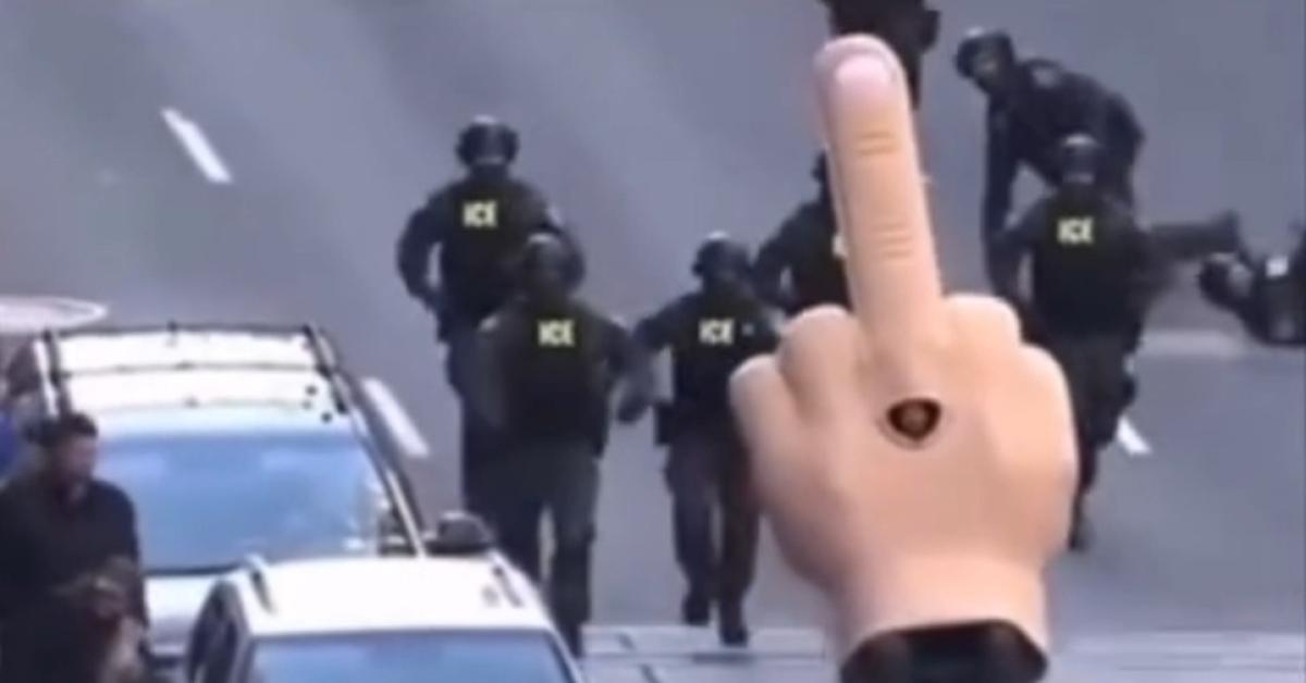 Un protestante travestito da dito medio ha cercato di seminare gli agenti dell’Immigration and Customs Enforcement (ICE) che lo rincorrevano. L'uomo è riuscito a prendere una grande velocità in discesa, sfrecciando su una sedia da ufficio con rotelle, scappando mentre loro lo rincorrevano. Secondo alcuni utenti il video potrebbe essere stato prodotto con l'intelligenza artificiale. Altri commentano: "Non tutti gli eroi indossano un martello", appoggiando le manifestazioni contro l'ICE