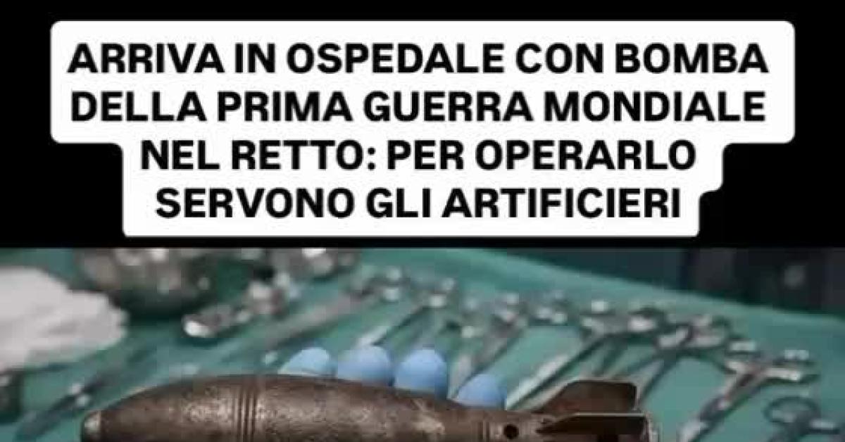A Tolosa, in Francia, un 24enne si è presentato al pronto soccorso dell’ospedale Rangueil lamentando forti dolori. Solo dopo gli esami diagnostici i medici hanno scoperto che l’uomo aveva nel retto una bomba a mano della Prima guerra mondiale, risalente al 1918. L’ordigno, lungo circa 16 centimetri e largo 4, ha fatto scattare l’immediato allarme. Sul posto, infatti, sono intervenuti artificieri della polizia e vigili del fuoco per mettere in sicurezza l’area. Il giovane è stato poi sottoposto a un delicato intervento chirurgico per l’estrazione.