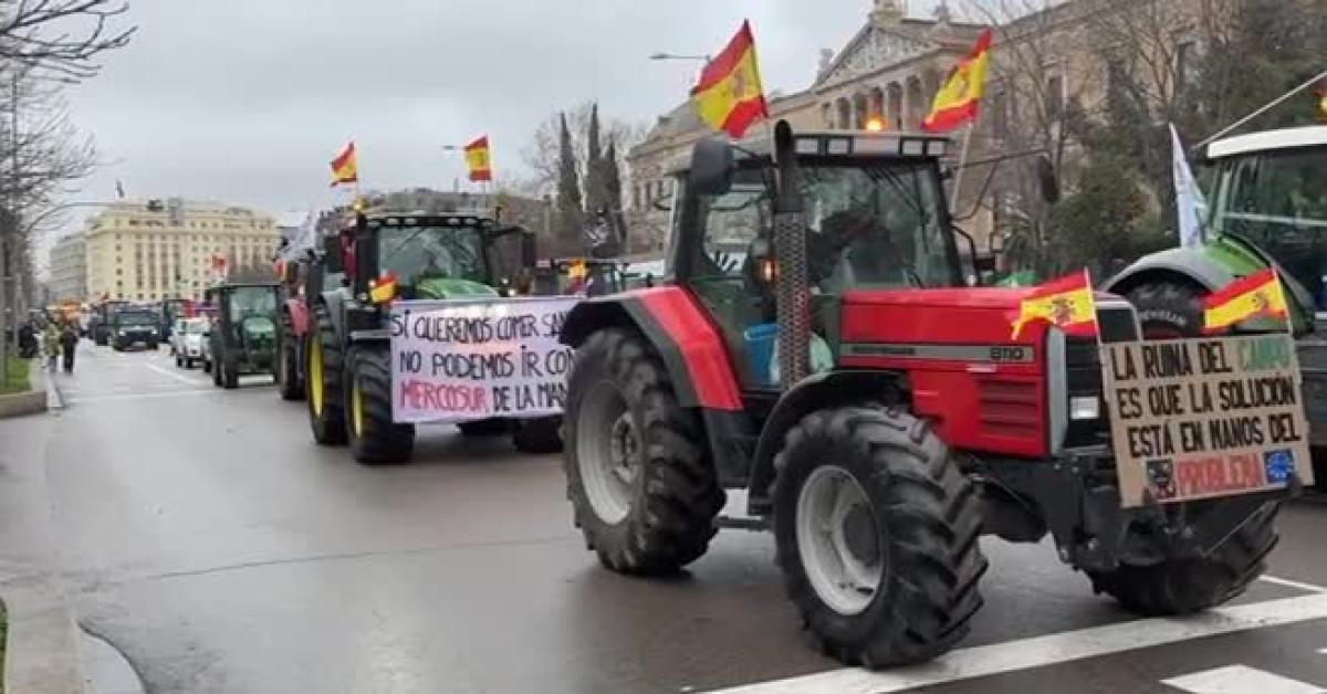 Cinque convogli di trattori da tutta la Spagna sono confluiti verso il centro città e spostandosi da Plaza Colon al ministero dell'Agricoltura hanno bloccato il traffico, con pesanti ripercussioni. I manifestanti hanno esposto striscioni con la scritta "No alla nostra rovina" e "La campagna spagnola non è in vendita".