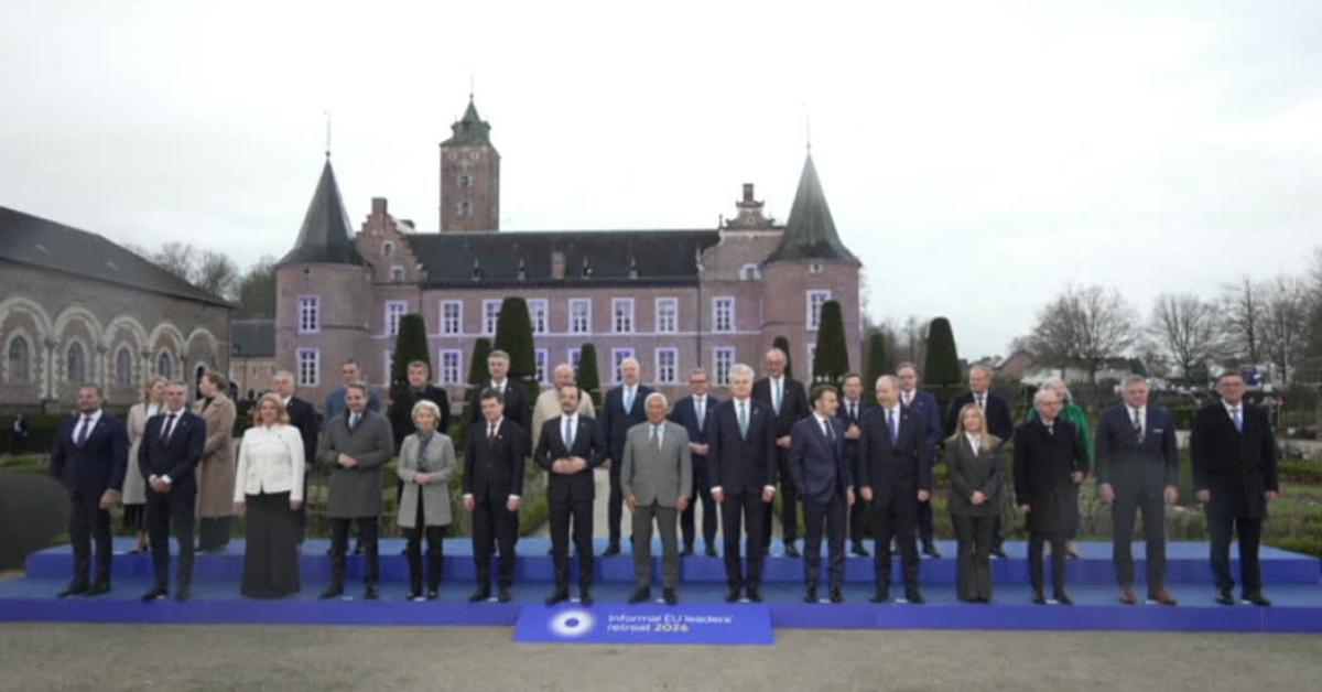 Roma, 12 feb. (askanews) - I leader dell'Ue riuniti per la foto di gruppo durante il ritiro informale al castello di Alden Biesen, in Belgio. Nelle immagini la presidente del Consiglio Giorgia Meloni, il cancelliere tedesco Friedrich Merz, il presidente francese Emmanuel Macron e il Taoiseach (primo ministro) irlandese Micheal Martin. E ancora, in prima fila, la presidente della Commissione europea Ursula von der Leyen.