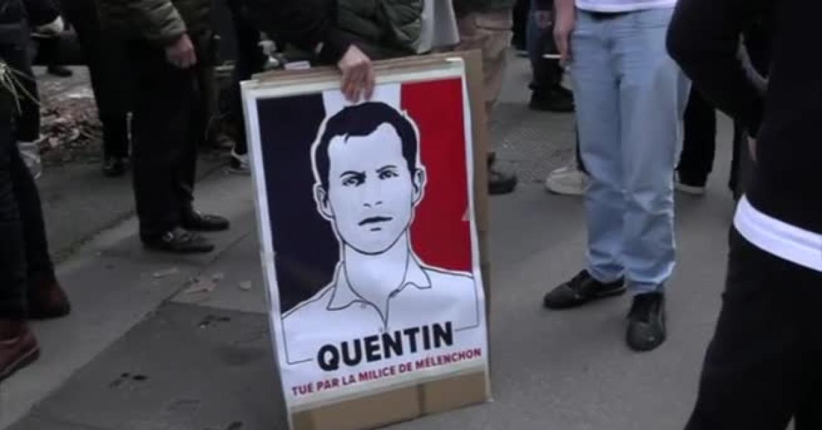 Lione, 21 feb. (askanews) - In mano un fiore bianco e sugli adesivi e i cartelli lo slogan "Giustizia per Quentin". Diverse centinaia di persone si sono date appuntamento a Lione per partecipare alla marcia in ricordo di Quentin Deranque, il giovane militante di estrema destra picchiato a morte da militanti di estrema sinistra il 12 febbraio scorso. Su un poster l'immagine stilizzata dello studente 23enne e la scritta "Ucciso dalla milizia di Melenchon"; un altro cartello recita "L'estrema sinistra uccide".