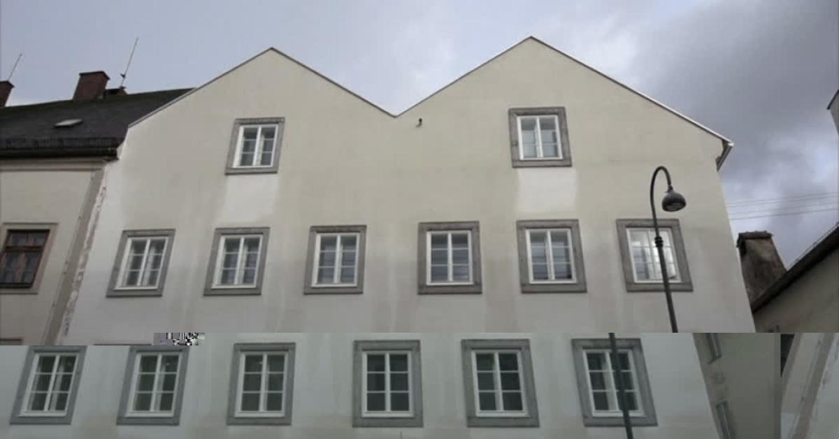 "La casa dietro di me, il luogo di nascita di Adolf Hitler, è stata destinata alla ristrutturazione alcuni anni fa. L'edificio è passato da proprietà privata a proprietà dello Stato austriaco. È stato deciso di ospitarvi una stazione di polizia. In precedenza era sede di laboratori protetti gestiti da organizzazioni per persone disabili".