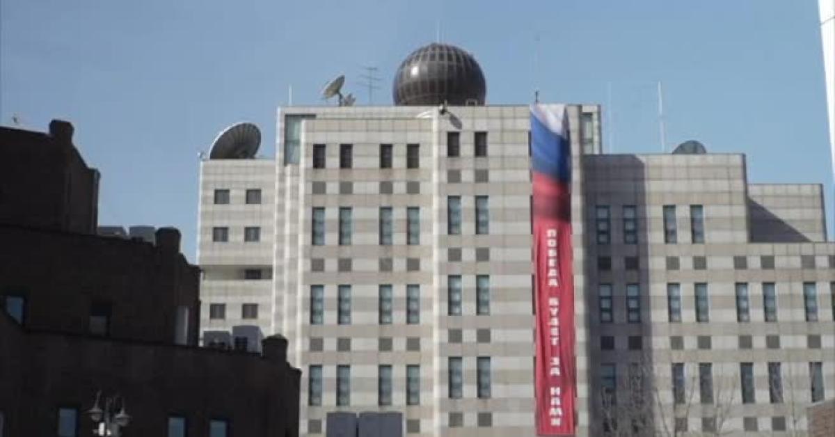La Corea del Sud si è opposta all'invasione dell'Ucraina da parte di Mosca e al reclutamento di soldati dalla Corea del Nord da parte della Russia. Lo striscione rosso, bianco e blu, in lingua russa, è stato segnalato nel fine settimana ed era ancora esposto presso l'ambasciata lunedì mattina, scrive Afp.