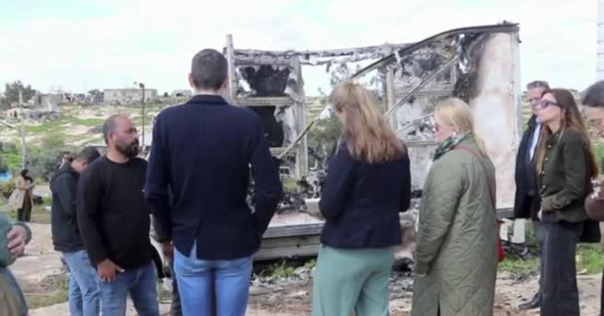 Milano, 25 feb. (askanews) - Una delegazione dell'Unione Europea ha visitato il villaggio di Susya, a sud di Yatta, nella Cisgiordania occupata, in seguito a un attacco notturno dei coloni che ha provocato l'incendio di diverse auto e il danneggiamento di diverse abitazioni palestinesi. Le Nazioni Unite hanno dichiarato che quasi 700 palestinesi sono stati sfollati a causa della violenza e delle intimidazioni dei coloni solo a gennaio, il numero mensile più alto dall'inizio della guerra di Gaza nell'ottobre 2023.
