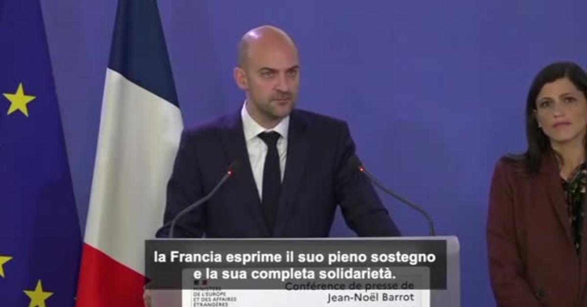 "Ai Paesi amici che sono stati deliberatamente presi di mira dai missili e dai droni dei Guardiani della Rivoluzione - ha detto Barrot - e trascinati in una guerra che non avevano scelto - Arabia Saudita, Emirati Arabi Uniti, Qatar, Iraq, Bahrein, Kuwait, Oman e Giordania - la Francia esprime il suo pieno sostegno e la sua completa solidarietà. È pronta, conformemente agli accordi che la legano ai suoi partner e ai principi di legittima difesa collettiva previsti dal diritto internazionale, a partecipare alla loro difesa".