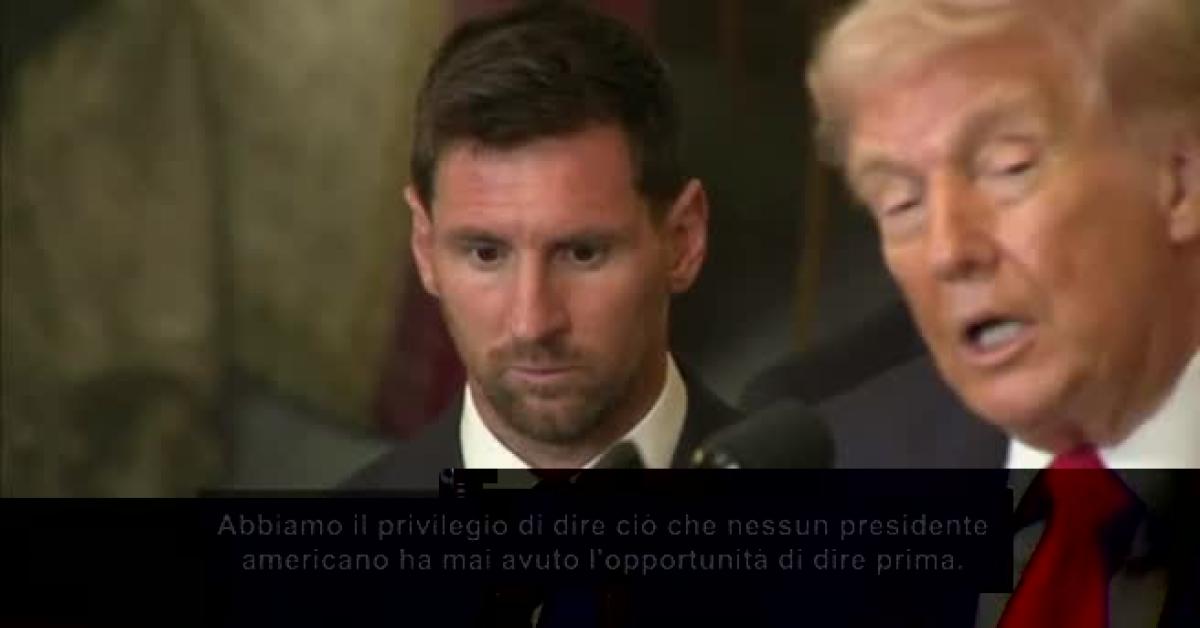 Washington, 6 mar. (askanews) - Il presidente degli Stati Uniti Donald Trump ha accolto il calciatore Lionel Messi e l'Inter Miami CF, campione della Major League Soccer 2025, durante una cerimonia alla Casa Bianca. Rivolgendosi agli ospiti, ha dichiarato: "Ma abbiamo il privilegio di dire ciò che nessun presidente americano ha mai avuto l'opportunità di dire prima. Benvenuto alla Casa Bianca, Lionel Messi".