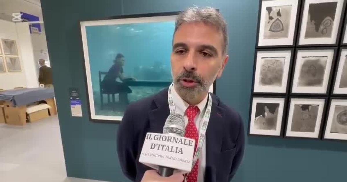 "Anche quest'anno il BNL BNP Paribas ha scelto un'opera all'interno della fiera particolarmente significativa a cui attribuire il premio BNL BNP Paribas per il 13esimo anno consecutivo. Quest'anno sono felice di annunciare che l'opera scelta è quella di Nick Brandt che si intitola 'Serafina at Table'. È una fotografia scattata sott'acqua, senza intelligenza artificiale e senza uso di nessun tipo di filtro, semplicemente ricostruendo il set alle isole Fiji. Racconta del cambiamento climatico da sotto il mare perché sono quelle isole, insieme a tante altre realtà, che rischiano di essere sommerse dalle acque nei prossimi decenni se il surriscaldamento globale continuerà ai ritmi che abbiamo conosciuto negli ultimi anni."