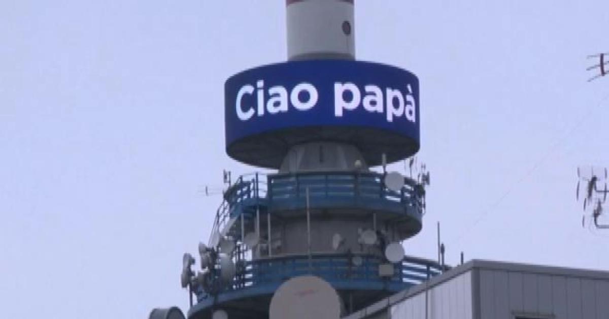 Sulla torre delle antenne, invece, è apparsa la scritta "Ciao papà" e "Grazie Silvio".