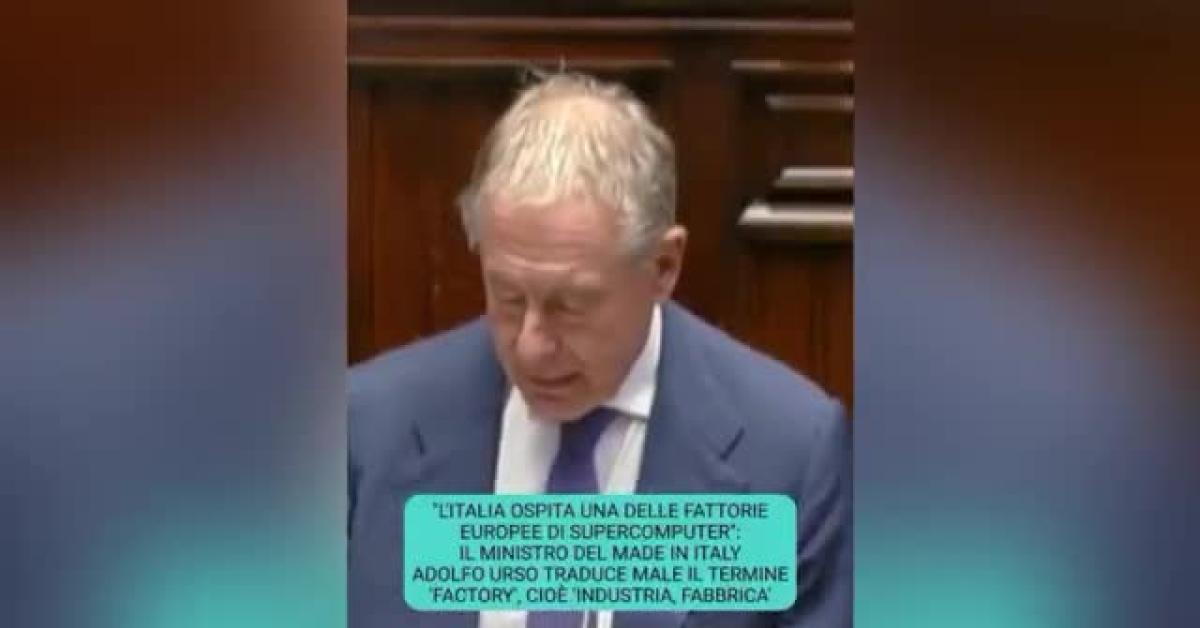 Urso stava illustrando i primati tecnologici del Paese: “L’Italia è l’unico Paese europeo a ospitare tre tra i più potenti supercomputer al mondo”, ha detto, riferendosi in particolare a quello di Leonardo, a Bologna, e all’emergente eccellenza italiana nell’intelligenza artificiale. Quando ha citato le “AI-factories”, però, ha tradotto il termine come “fattoria” invece di “industria” o “fabbrica”, trasformando così una delle infrastrutture tecnologiche più avanzate in un’azienda agricola.