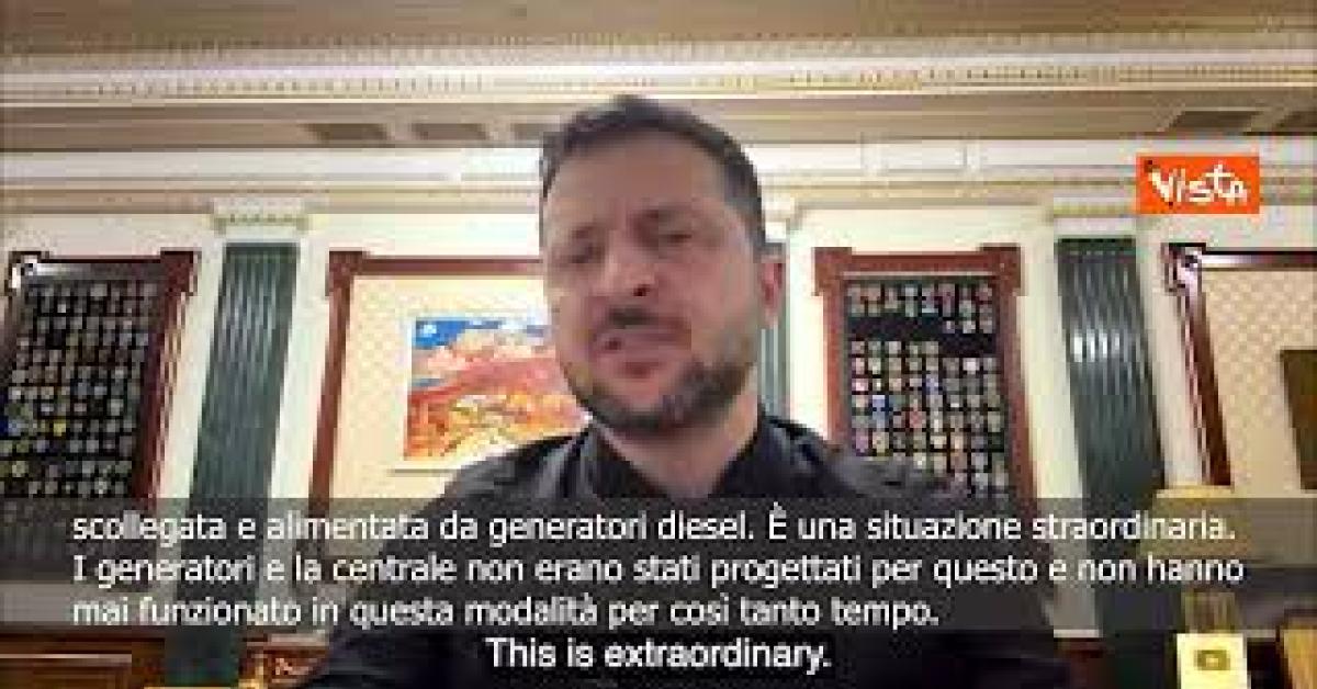 (Agenzia Vista) Kiev, 01 ottobre 2025 “E' il settimo giorno, non era mai accaduto prima, di emergenza presso la centrale nucleare di Zaporizhia. La situazione è critica. A causa dei bombardamenti russi, la centrale è stata tagliata fuori dalla rete elettrica, scollegata e alimentata da generatori diesel.” Così il Presidente ucraino Volodymyr Zelensky. Courtesy: Telegram Zelensky Fonte: Agenzia Vista / Alexander Jakhnagiev