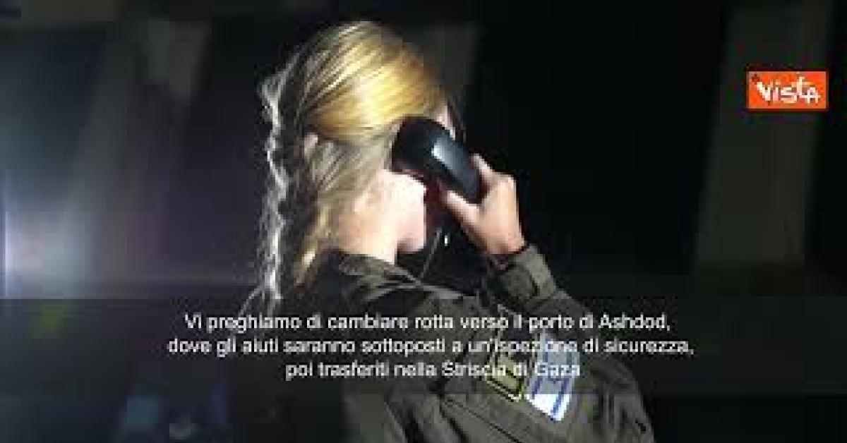 (Agenzia Vista) Israele, 01 ottobre 2025 “Qui è la marina israeliana. Vi state avvicinando a una zona sottoposta a blocco. "Se desiderate consegnare aiuti a Gaza, potete farlo attraverso i canali stabiliti. Vi preghiamo di cambiare rotta verso il porto di Ashdod, dove gli aiuti saranno sottoposti a un'ispezione di sicurezza, poi trasferiti nella Striscia di Gaza”, il video diffuso dal Ministero degli Esteri israeliano mostra l'ordine lanciato al telefono alla Flotillia. Ministero Esteri Israele Fonte: Agenzia Vista / Alexander Jakhnagiev