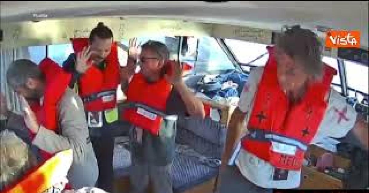 Gli attivisti della Flotilla scendono con le mani alzate dopo abbordaggio soldati israeliani