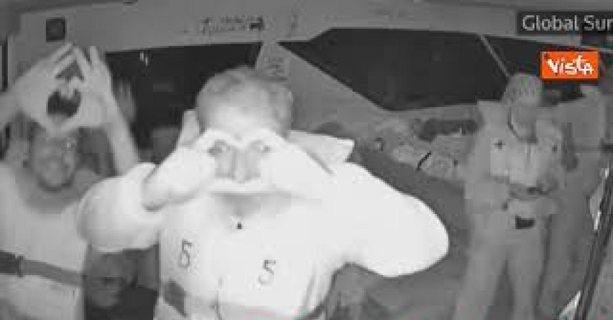 Attivisti Flotilla fanno segni di cuori con le mani prima dell'abbordaggio dei soldati israeliani