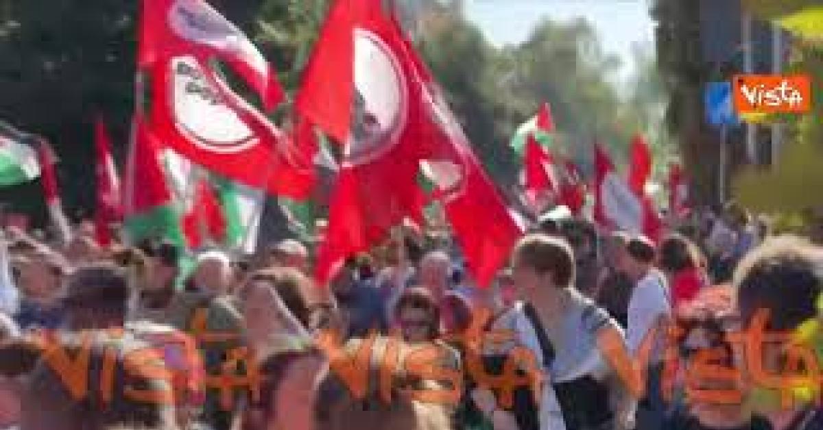 (Agenzia Vista) Roma, 04 ottobre 2025 Le bandiere della Palestina sventolano al corteo pro Gaza a Roma. In migliaia sono scesi in piazza all'indomani dello sciopero generale per la Flotilla Fonte: Agenzia Vista / Alexander Jakhnagiev