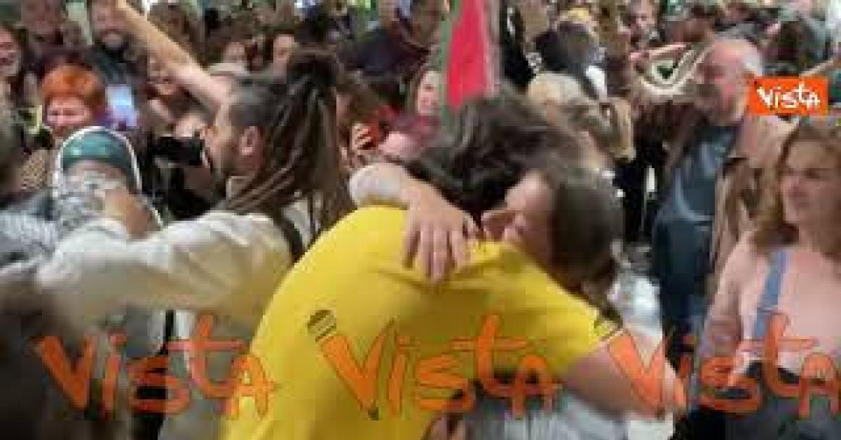 Rientrano ultimi attivisti della Flotilla, esplode la gioia a Fiumicino con cori, bandiere e kefiah