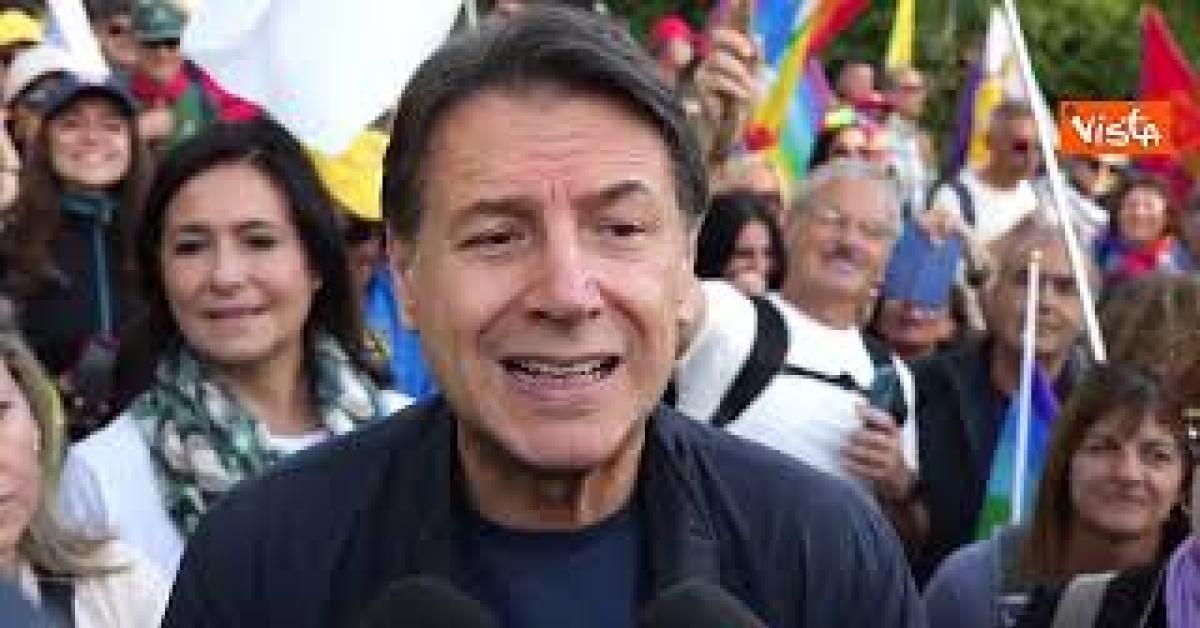 (Agenzia Vista) Perugia, 12 ottobre 2025 “Siamo alla marcia della pace perché la bandiera blu dell’Europa si è tinta di verde militare. Abbiamo bisogno di un piano choc di investimenti, di un severo taglio delle tasse, di un aumento della no tax area e di risorse vere per la sanità, perché i cittadini non si curano più. Serve anche incrementare l’assegno unico per le famiglie”. Così Giuseppe Conte, leader del Movimento 5 Stelle, durante la Marcia della pace Perugi-Assisi. Fonte: Agenzia Vista / Alexander Jakhnagiev