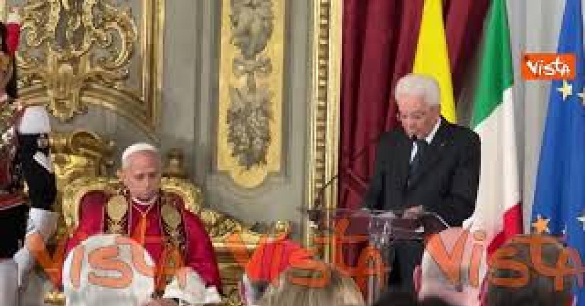 (Agenzia Vista) Roma, 14 ottobre 2025 "Le esprimo, Santità, la riconoscenza più alta per l’insegnamento e l’orizzonte presentati dalla Dilexi te, l’Esortazione Apostolica diffusa nei giorni scorsi, che sollecita alla indispensabile trasformazione di mentalità. Non vogliamo arrenderci alla prospettiva di una società dominata da oligarchi o, meglio, da privilegiati, in base al censo, alla spregiudicatezza, all’indifferenza verso gli altri, che si profila rimuovendo i valori di uguaglianza, di solidarietà, di libertà. Accanto a questi – in contrasto con tante generose iniziative, anche in Italia - vi sono fenomeni sovente mossi dalla paura dello sconosciuto, dall’arroccamento di fronte a processi strutturali di rilevanza globale che stanno modificando le nostre realtà: il cambiamento climatico, le migrazioni, lo stesso uso delle nuove tecnologie". Lo ha detto il Presidente della Repubblica in una dichiarazione dopo aver accolto Papa Leone XIV al Quirinale. Fonte: Agenzia Vista / Alexander Jakhnagiev