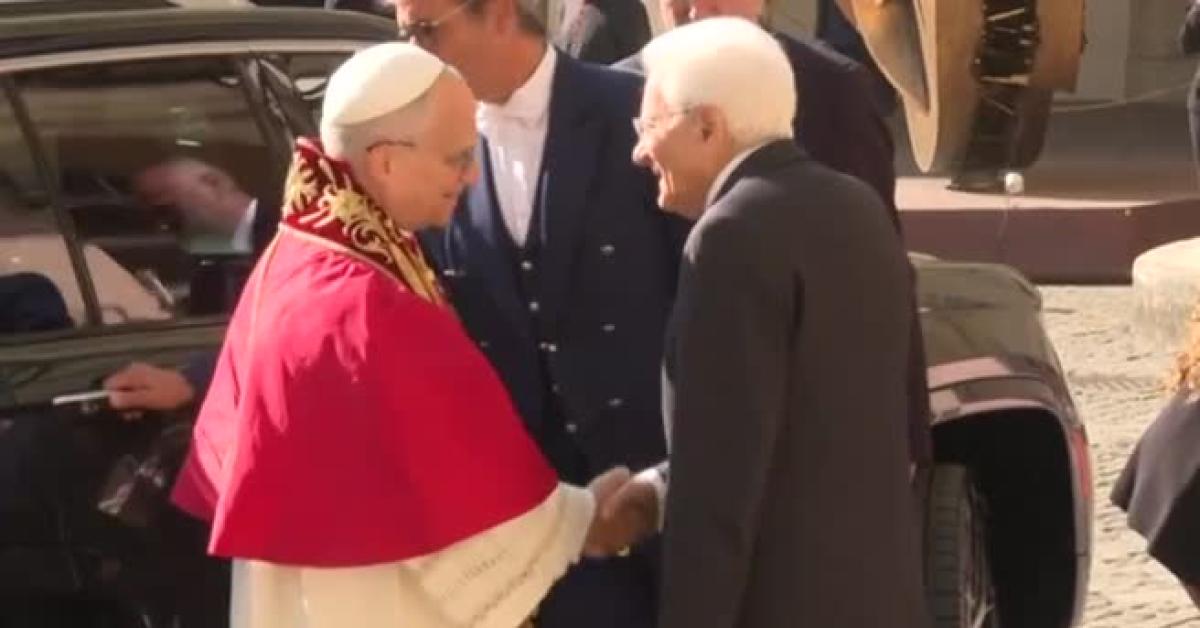 Roma, 14 ott. (askanews) - Papa Leone XIV ha fatto visita al presidente della Repubblica italiana Sergio Mattarella al Quirinale. Il Pontefice, scortato dai Corazzieri lungo il percorso è stato salutato dalla folla per le vie di Roma, poi è stato accolto per la visita in Italia dal vicepresidente del Consiglio Antonio Tajani e dal sottosegretario a Palazzo Chigi Alfredo Mantovano. Per la visita di Stato del Papa al Quirinale è arrivata anche la presidente del Consiglio Giorgia Meloni. Il colloquio privato tra il Presidente della Repubblica, Sergio Mattarella e Papa Leone XIV è durato oltre mezz'ora. Un colloquio che si è svolto nella Studio alla Vetrata. Poi i discorsi davanti alle più alte cariche dello Stato e ai ministri della Repubblica.