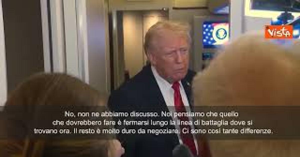 (Agenzia Vista) Usa, 20 ottobre 2025 “No, non ne abbiamo discusso. Noi pensiamo che quello che dovrebbero fare è fermarsi lungo la linea di battaglia dove si trovano ora. Il resto è molto duro da negoziare. Ci sono così tante differenze. Quello che dico è che dovrebbero fermarsi ora lungo le linee del fronte, tornare a casa, smettere di uccidere. Il Donbass dovrebbe rimanere così com’è ora e le due parti potranno negoziare qualcosa più avanti”, lo ha detto Trump alla stampa sull’Air Force One. WhiteHouse Fonte: Agenzia Vista / Alexander Jakhnagiev
