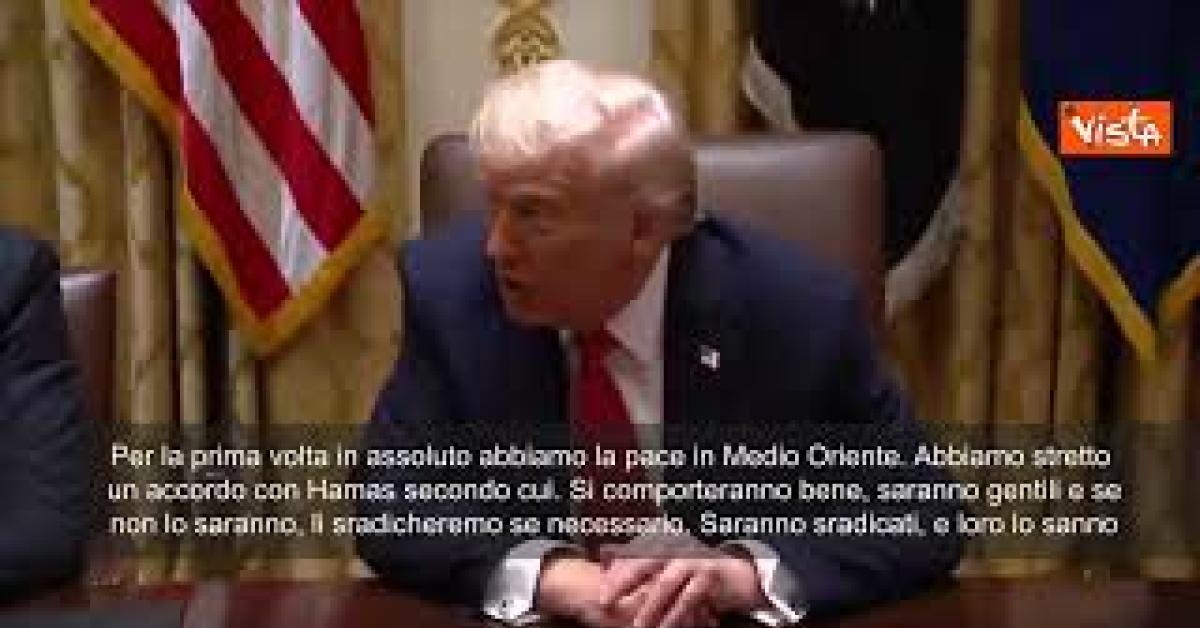 Trump: Per prima volta abbiamo pace in Medio Oriente. Se Hamas romperà la tregua li sradicheremo