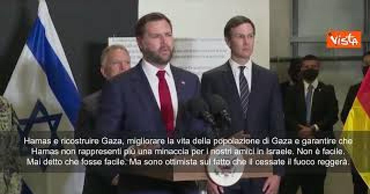 (Agenzia Vista) Israele, 21 ottobre 2025 "Sappiamo che Hamas deve rispettare l'accordo, e se non lo rispetta, succederanno cose molto brutte... per dargli una possibilità di successo, dobbiamo essere un po' flessibili. Abbiamo davanti a noi un compito molto, molto arduo, disarmare Hamas e ricostruire Gaza, migliorare la vita della popolazione di Gaza e garantire che Hamas non rappresenti più una minaccia per i nostri amici in Israele. Non è facile. Non ho mai detto che fosse facile. Ma sono ottimista sul fatto che il cessate il fuoco reggerà". Lo ha detto il vice Presidente Usa Jd Vance in Israele. White House Fonte: Agenzia Vista / Alexander Jakhnagiev